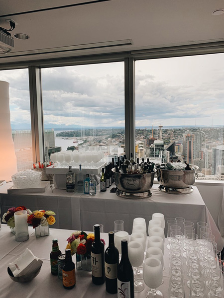 Rental bar at a 600 guest wedding at Magnuson Park.